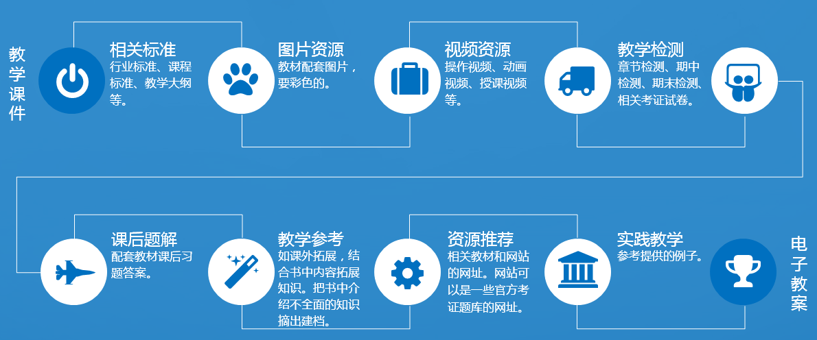 教学检测:此类包含章节检测、期中检测、期末检测、相关考证试卷及课后习题答案。