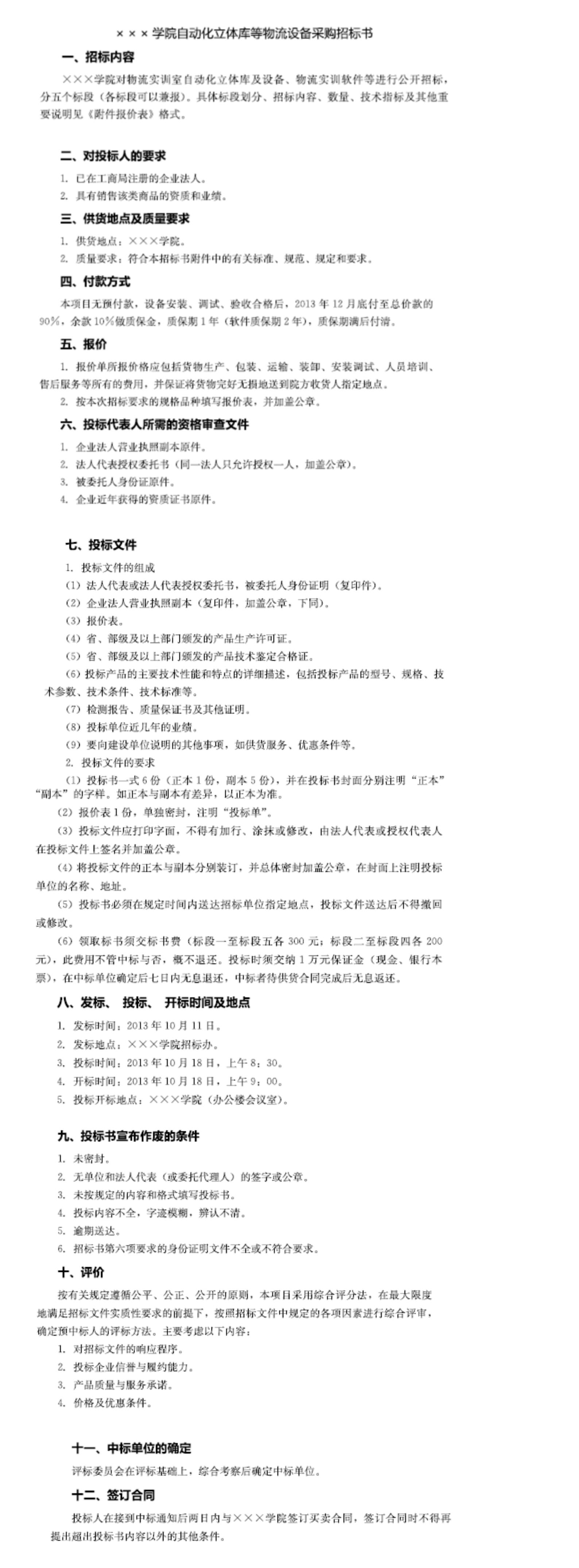 物流设备采购招标书