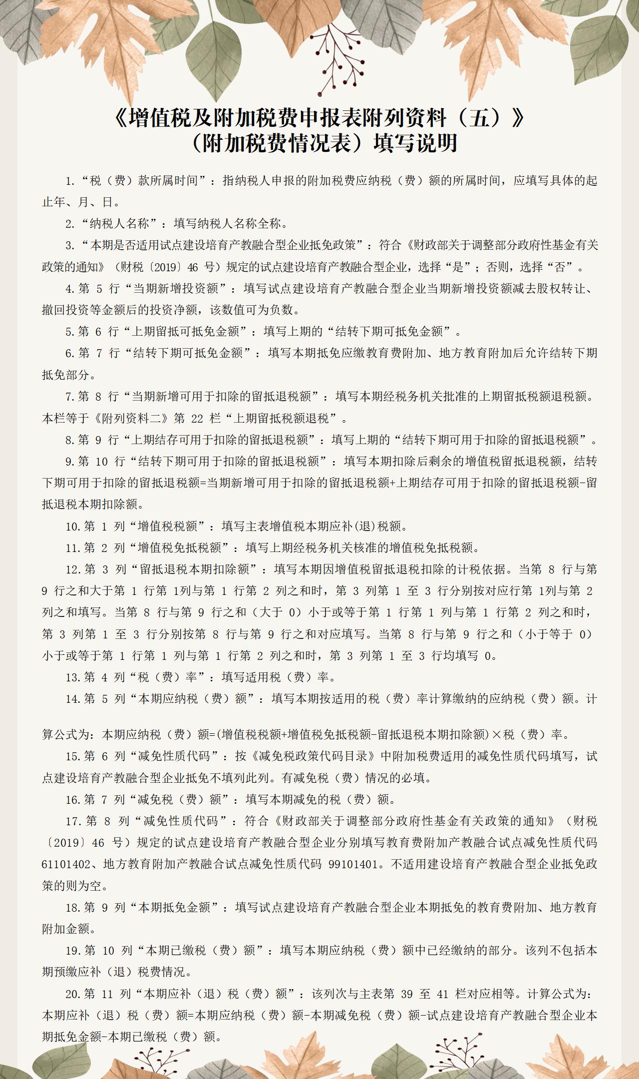 《增值税及附加税费申报表附列资料(五)》(附加税费情况表)填写说明