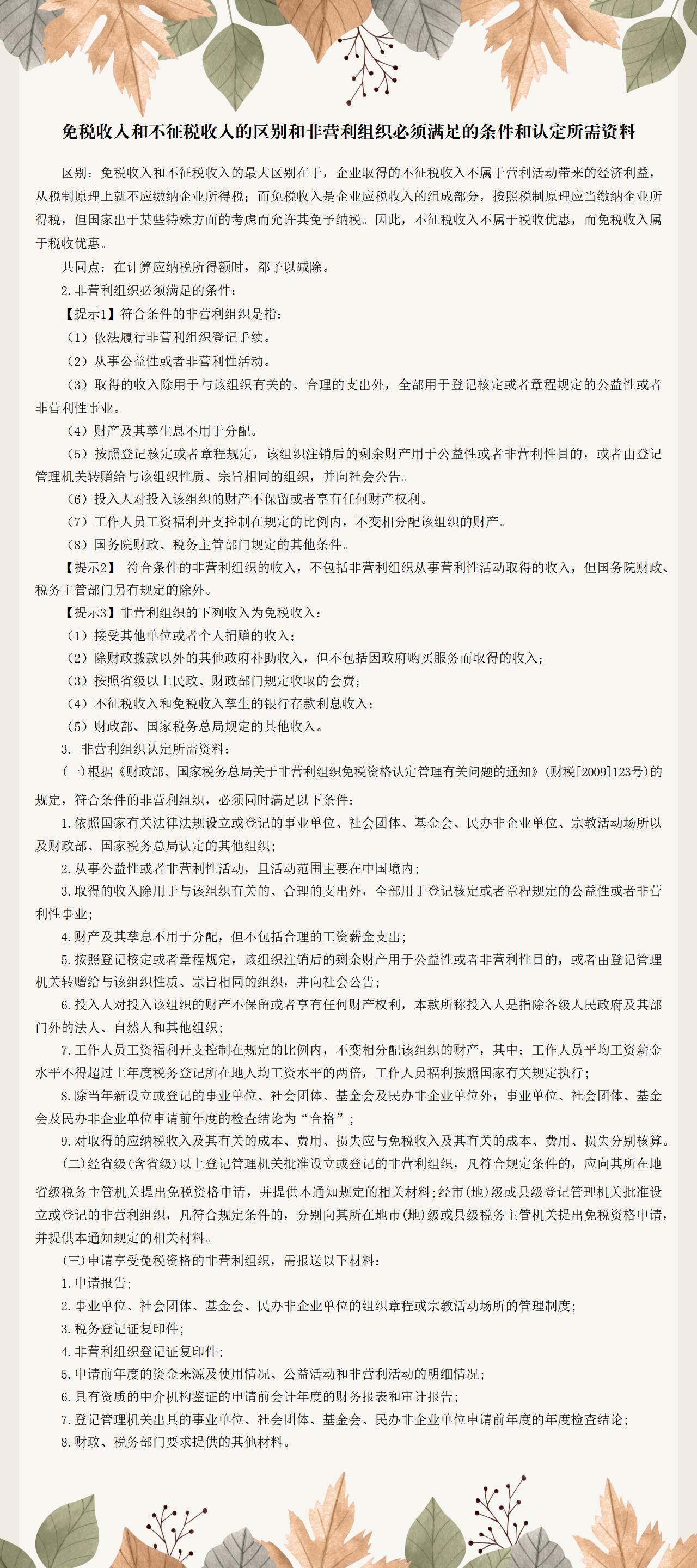 免税收入和不征税收入的区别和非营利组织必须满足的条件和认定所需资料