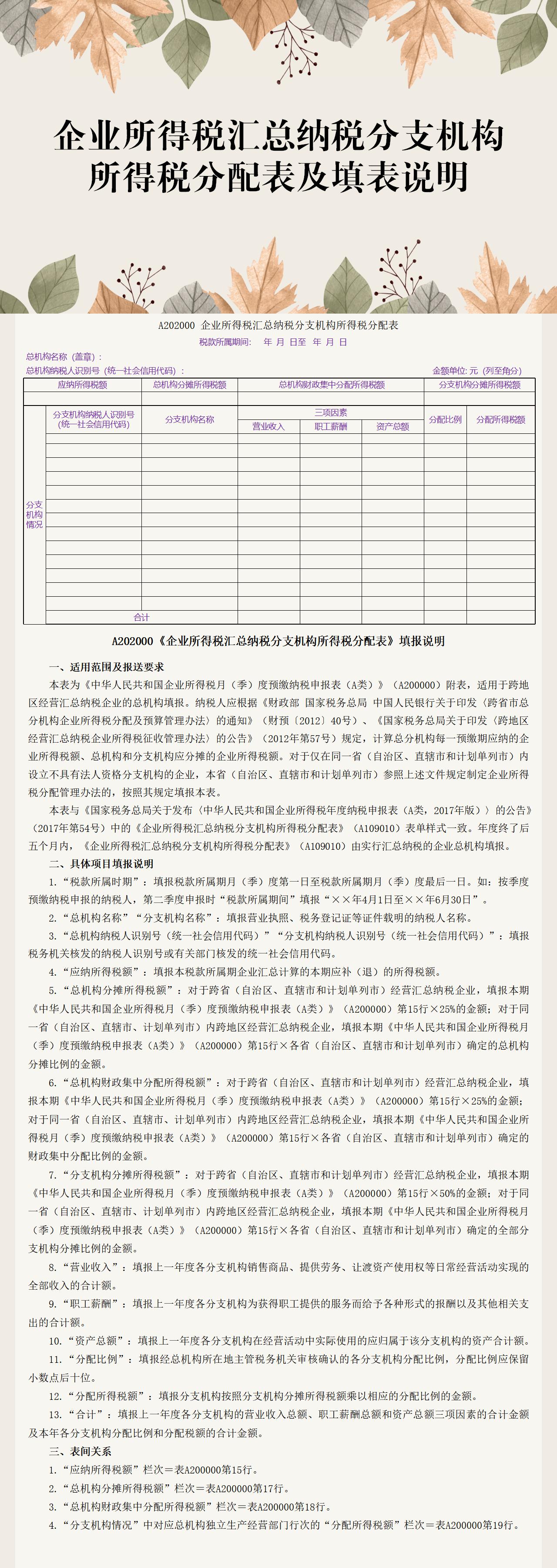 企业所得税汇总纳税分支机构所得税分配表及填表说明