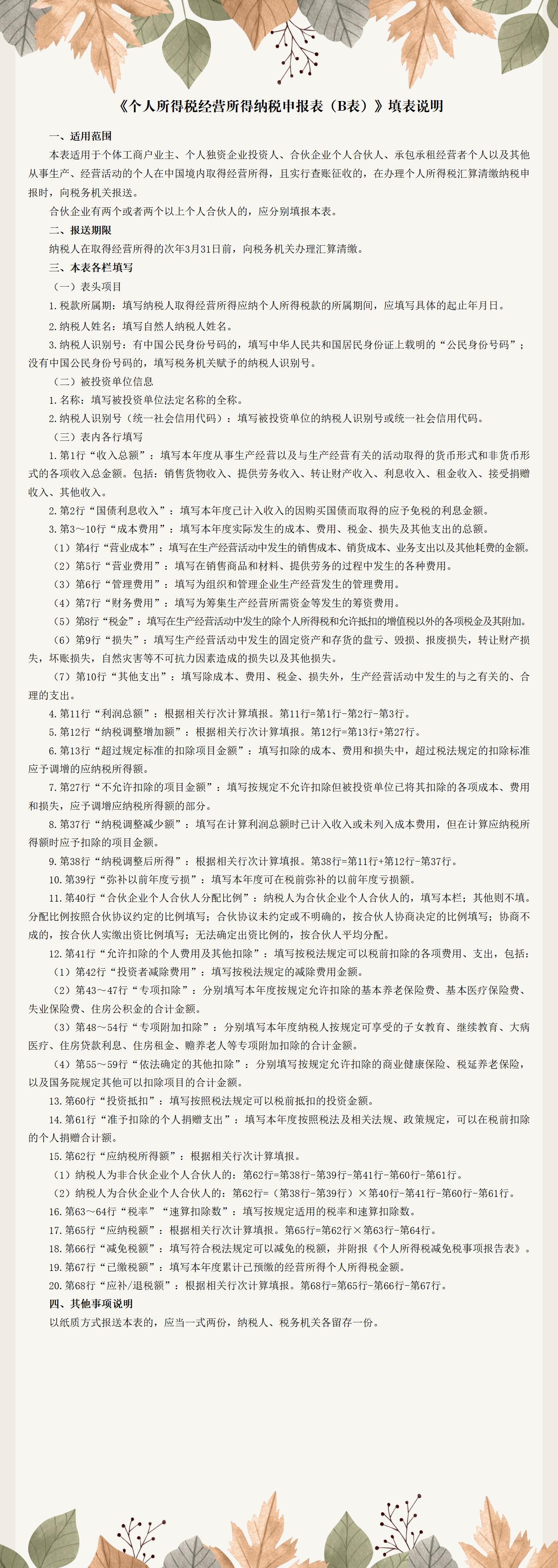 《个人所得税经营所得纳税申报表(B表)》填表说明