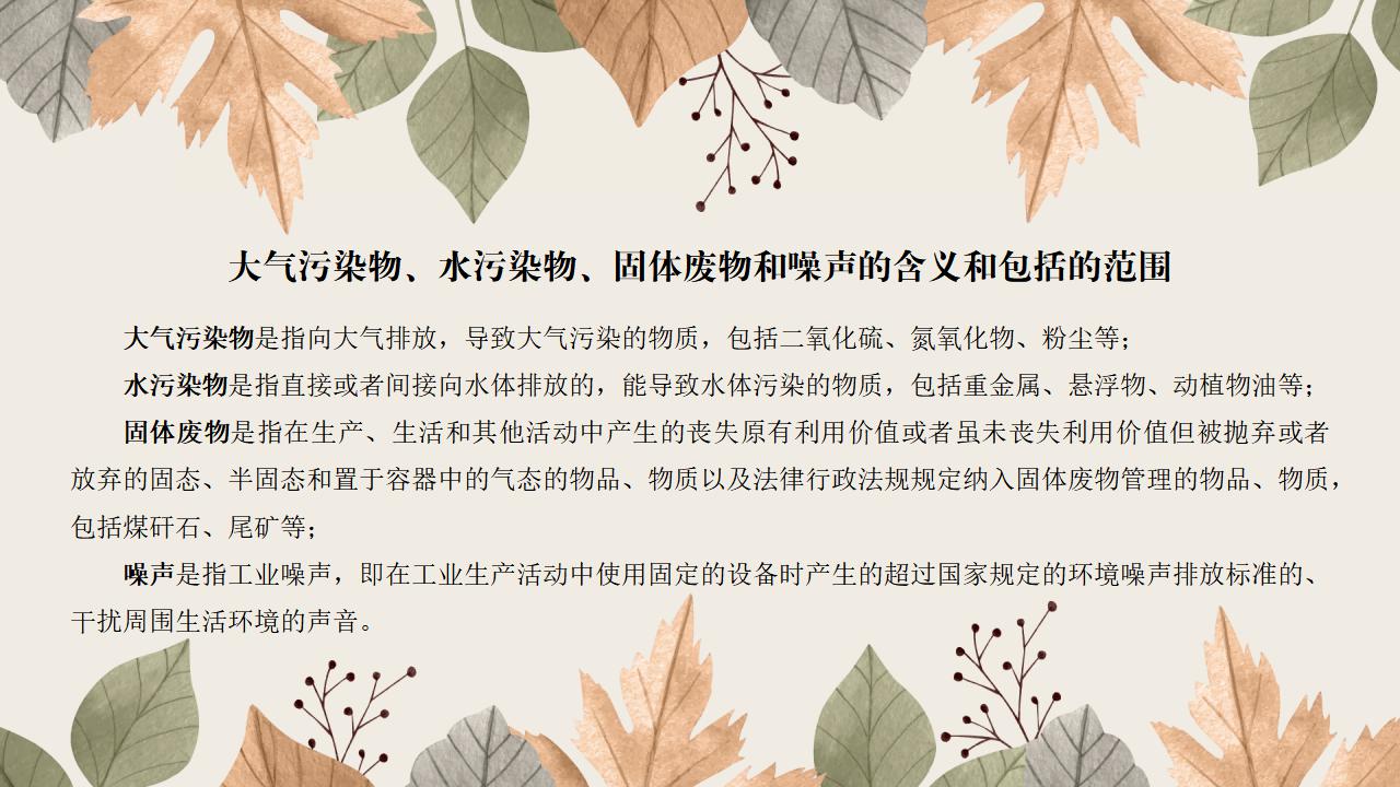 大气污染物、水污染物、固体废物和噪声的含义和包括的范围