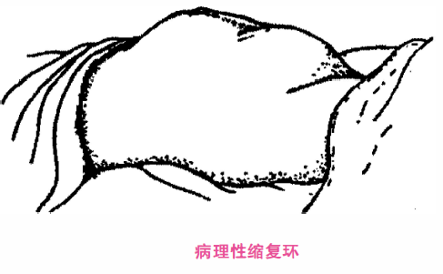 ②子宫痉挛性狭窄环:子宫局部肌肉强直性收缩,形成环状狭窄,缠绕胎体的某一部位,多发生在胎体的狭窄部位如胎颈、胎儿腰部等。痉挛性狭窄环可以发生在宫颈、子宫下段或子宫的任何部位,需与先兆子宫破裂的病理性缩复环鉴别。痉挛性狭窄环多由于产妇紧张、过度疲劳或不恰当地应用宫缩剂及粗暴的宫腔操作。