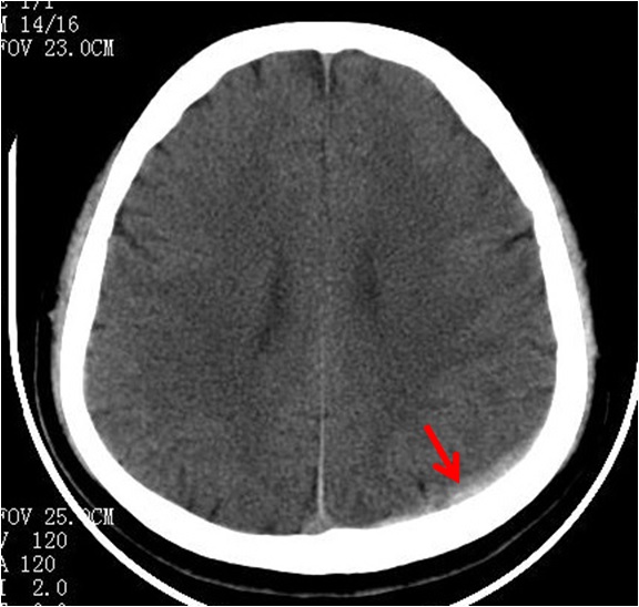 迟发性外伤性颅内血肿指伤后首次CT检查时无血肿,而在以后的CT检查中发现了血肿,或在原无血肿的部位发现了新的血肿,此种现象可见于各种外伤性颅内血肿。可能是外伤时血管受损,但尚未全层破裂,因而CT检查未见血肿;伤后由于损伤所致的局部二氧化碳蓄积,酶的副产物释放以及脑血管痉挛等因素,使得原已不健全的血管壁发生破裂而出血,形成迟发性血肿。表现为伤后经历一段病情稳定期后,出现进行性意识障碍加重等颅内压增高的表现,确诊须依靠多次CT检查的对比。迟发性血肿常见于伤后24h内,可发生在脑内、硬脑膜下或硬脑膜外,以迟发性脑内血肿较多见。