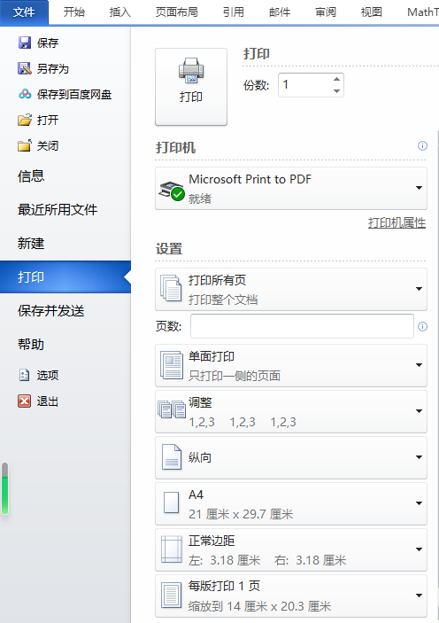 设置打印条件,如:打印机驱动是否正确、设置打印份数和打印范围等。 单击“打印”按钮即可打印。