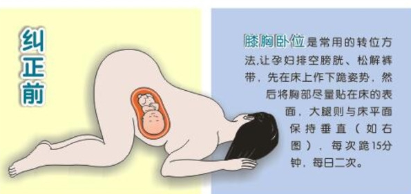 这种姿势能使胎臀退出盆腔,借胎儿重心的改变使胎头与胎背所形成弧面,顺着宫底弧面滑动以完成转位,如果坚持应用此法纠正7~10日,可有70%~80%的孕妇胎位得以纠正。