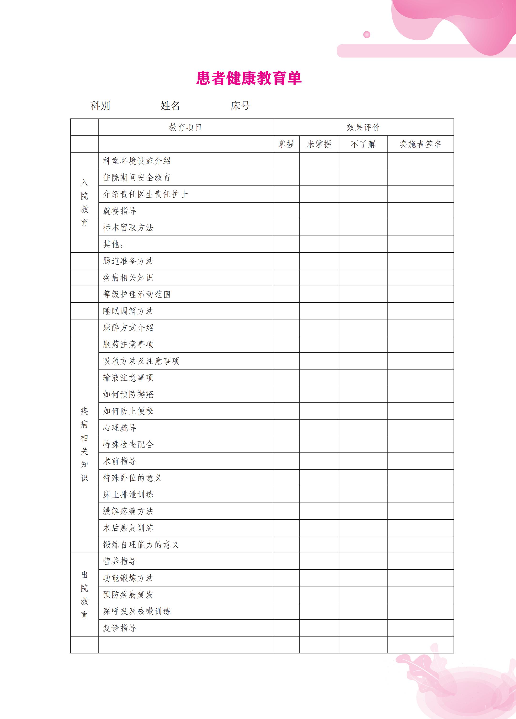 6-6 患者健康教育单 P319
