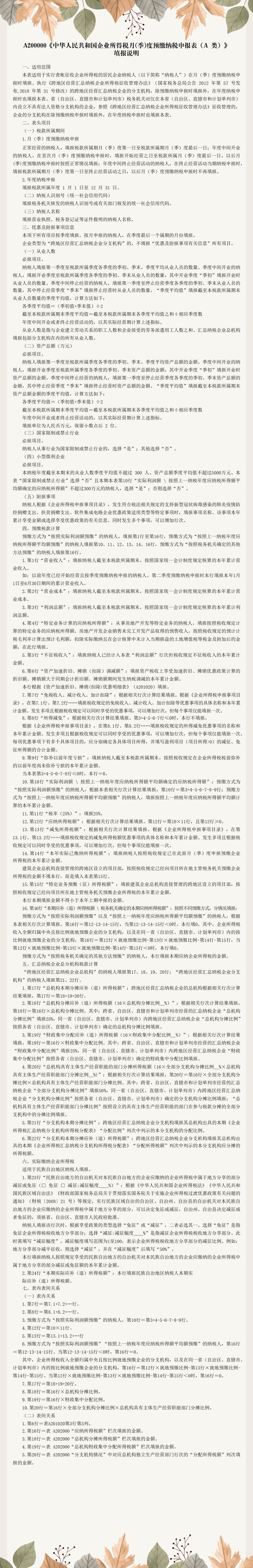 7-13 《中华人民共和国企业所得税月$2季$3度预缴纳税申报表(A 类)》 填报说明