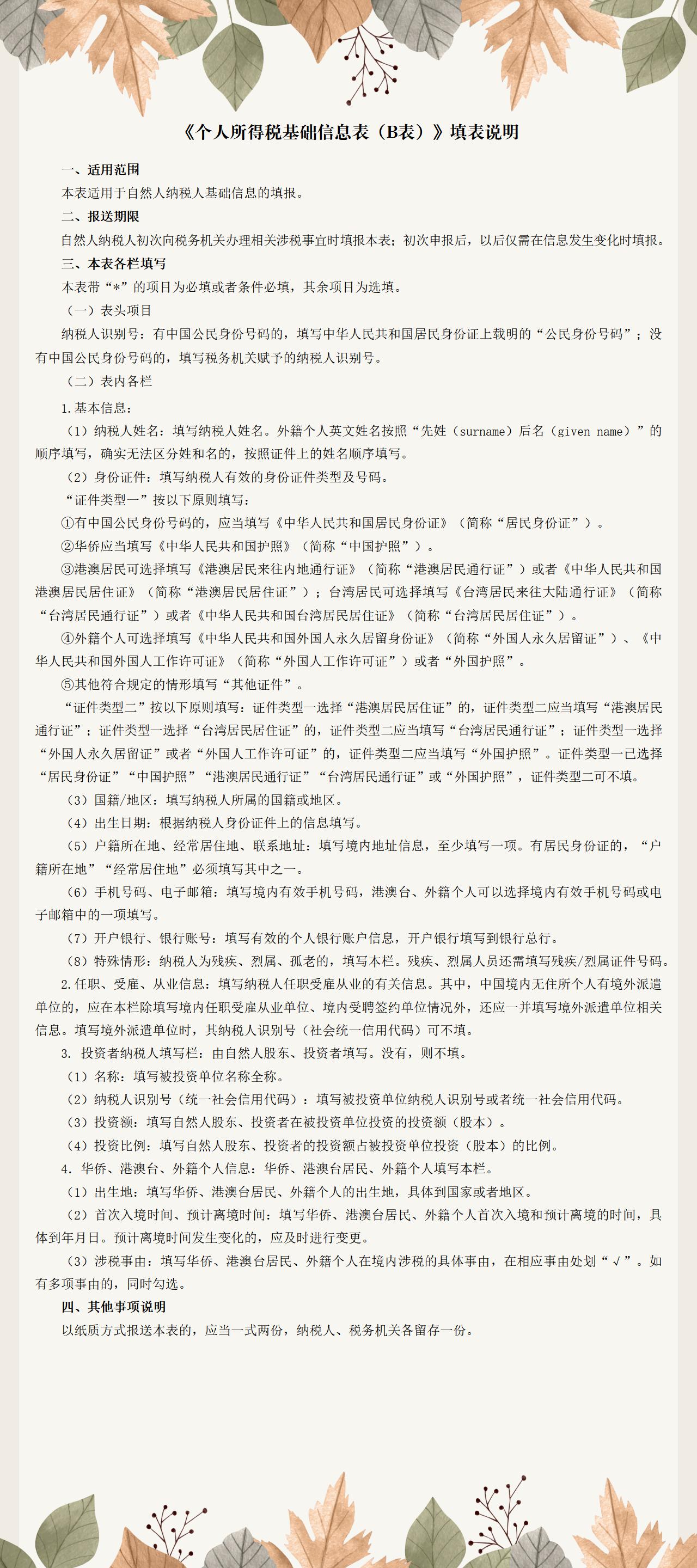 8-10《个人所得税基础信息表(B表)》填表说明