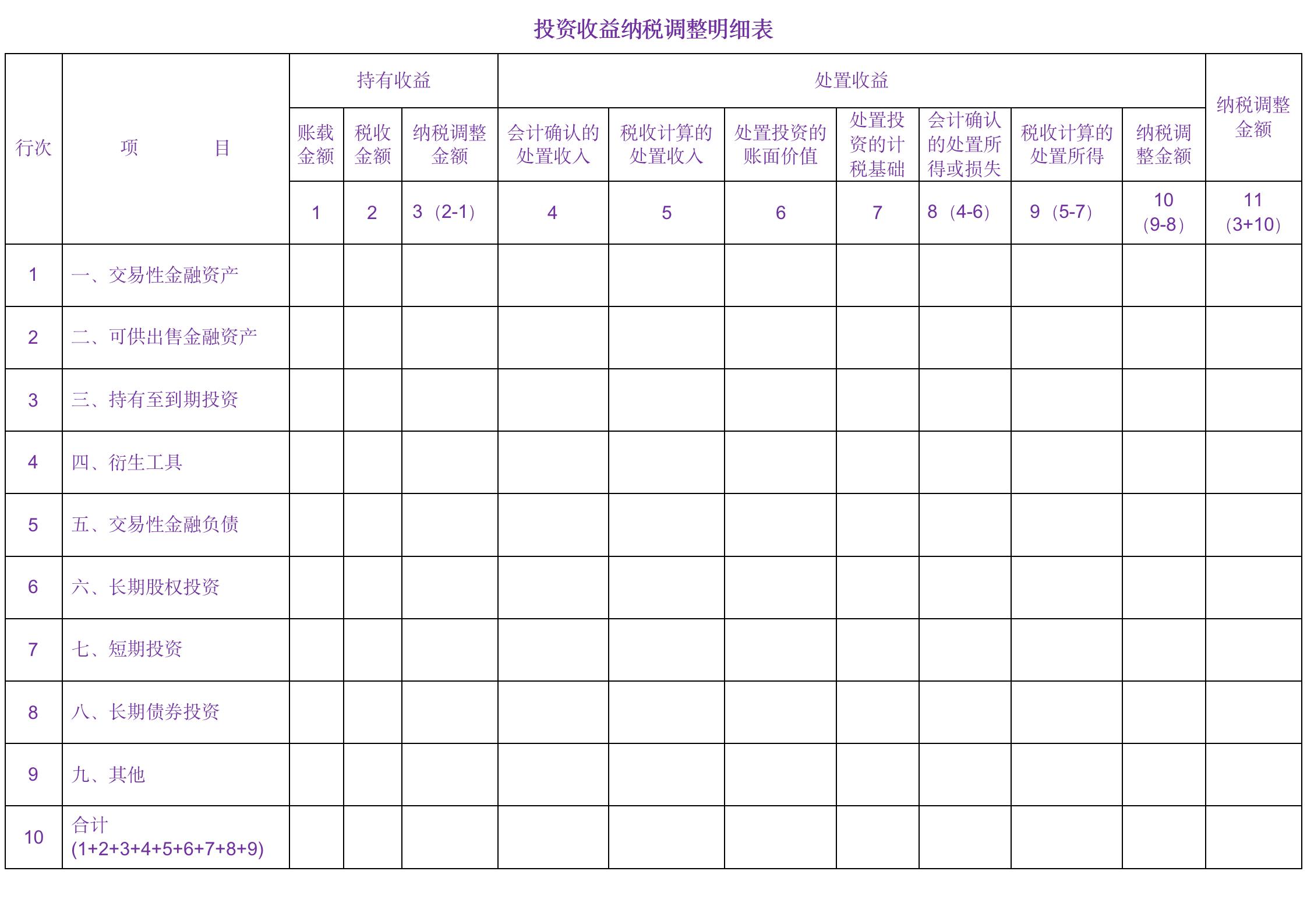 7-37 投资收益纳税调整明细表