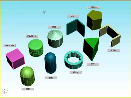 标准基本体很常用,理解起来也很容易,主要有以下的一些类型(如图4.2.1)。应该熟练掌握各种标准基本体的创建方法和参数的调节方法。