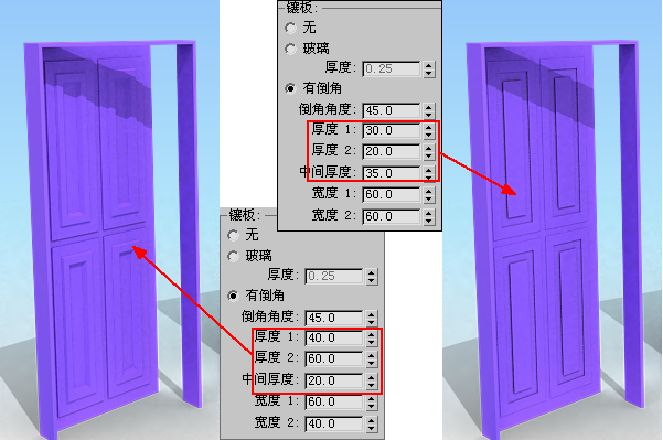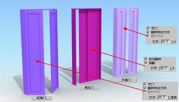 下面我们来看看三种门,门的控制面板中的所有参数的意义和效果,如图4.2.18~图4.2.26所示。