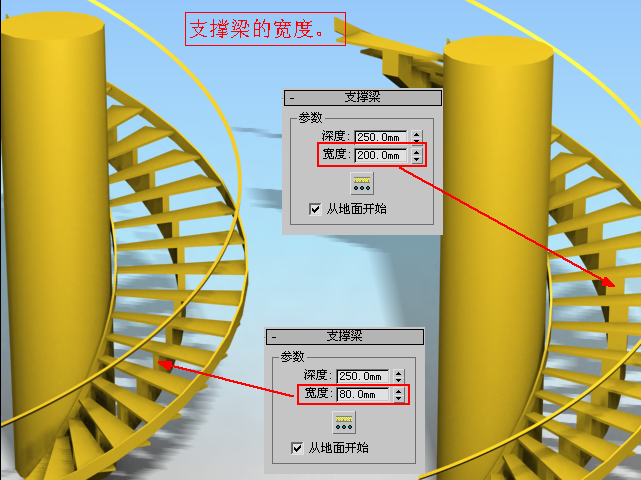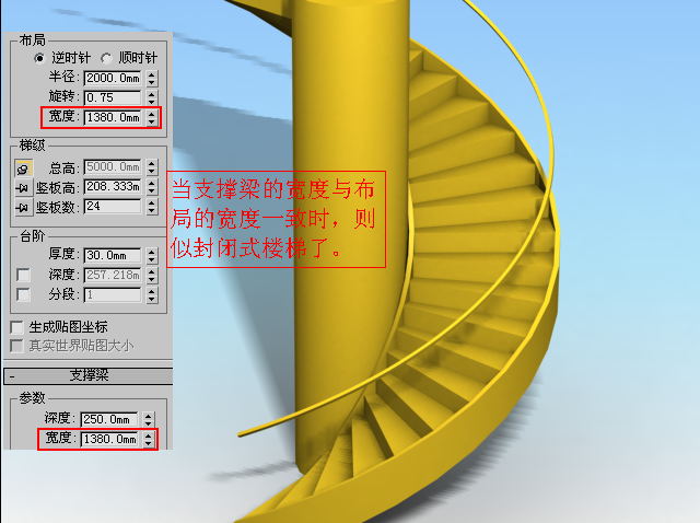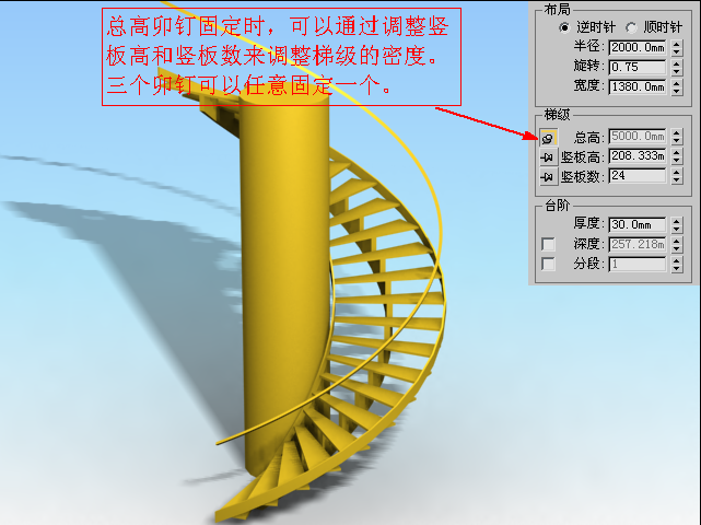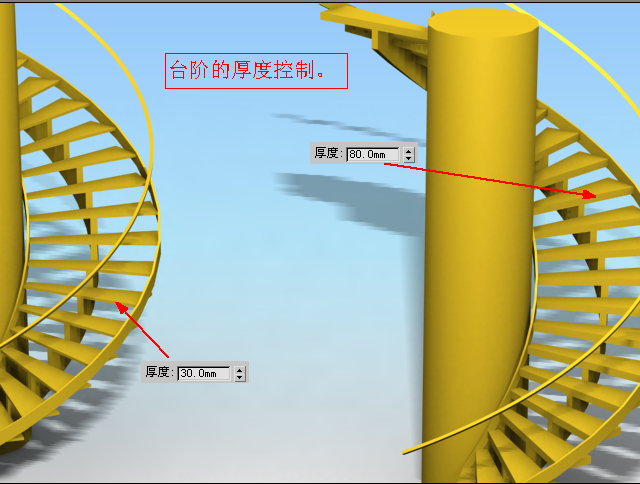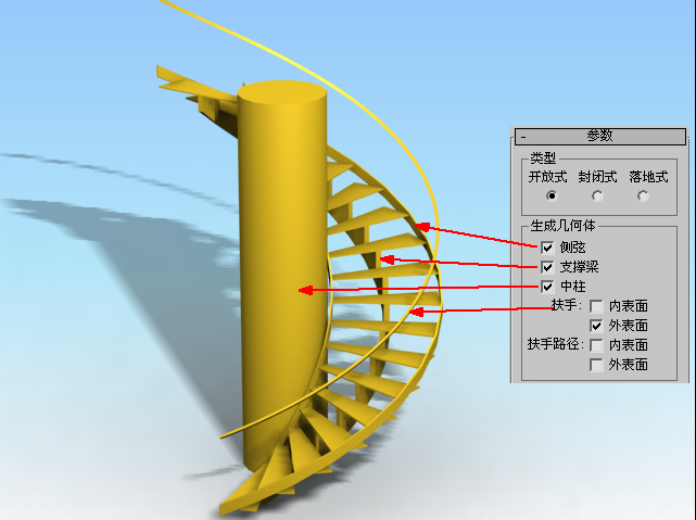 下面以螺旋楼梯为例来了解一下参数,如图4.2.42~图4.2.46所示: