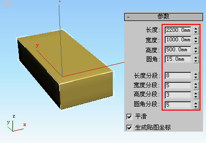 在透视图中创建一如图4.4.95所示,参数的切角长方体: