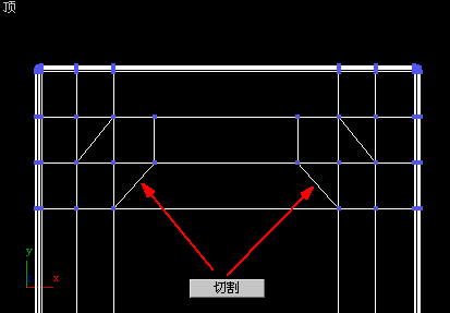 在修改命令面板的“编辑几何体”卷展栏中点击按钮,在如图4.4.104所示的位置进行面。注意:在切割模型表面时,一般使用顶点捕捉进行切割,如果不使用捕捉就进行切割,在切割过程当中会出现一些不规则的三角面,容易出现错误。