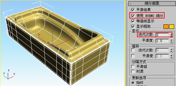 在细分曲面卷展栏,勾选“使用NURMS细分”,设置迭代次数为2,如图4.4.124所示。