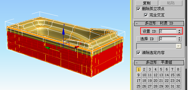 在多边形材质ID卷展栏中设置ID为2,其他的表面为1,如图4.4.126所示。