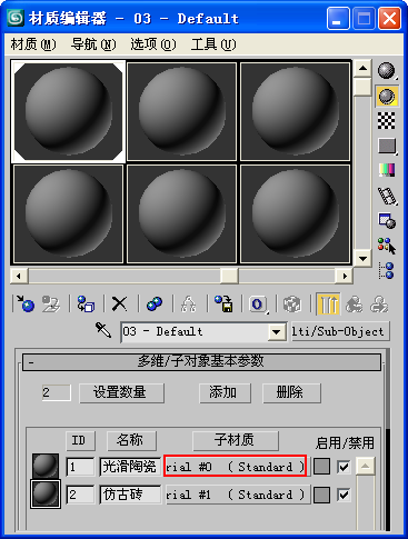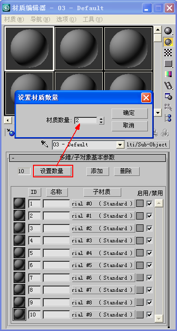 设置数量为2,因为我们只需要两个材质类型就可以了,如图4.4.130所示。