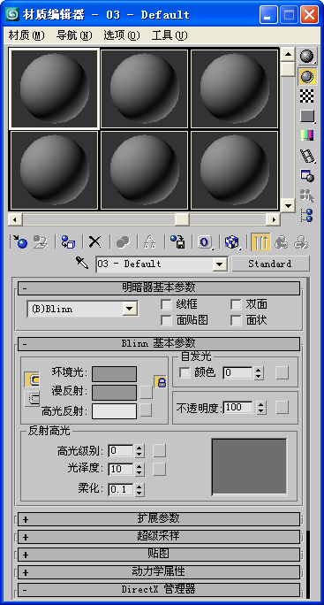 退出多边形层级,回到物体的总层级。单击主工具栏上的按钮,打开材质编辑器,如图4.4.127所示。