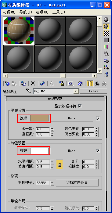 单击进入父材质层级,同样进入ID为2的材质,也换成VRayMtl的材质类型。在漫射通道上面添加一平铺贴图类型,如图4.4.137所示。