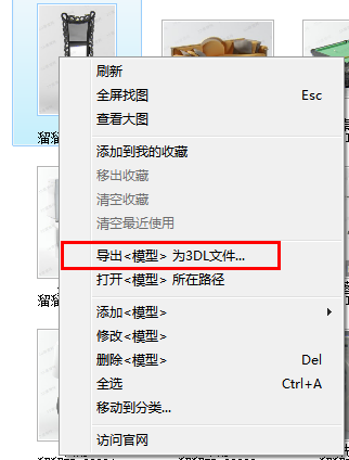选中你想导出成3DL文件的模型、材质、灯光或者脚本,可以多选,然后点击鼠标右键有个“导出模型为3DL文件”,就可以成功的导出成3DL文件了。如图4.5.21所示是模型目录的截图。