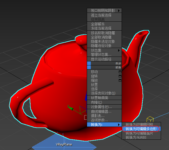 首先是把茶壶按右键转换为可编辑多边形物体。如图5.4.28所示。