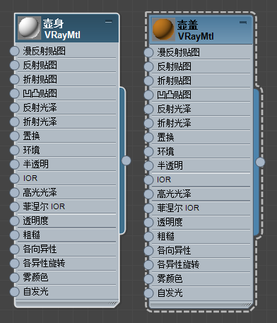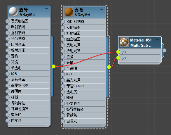 把壶身和壶盖的材质拖入多维/子对象材质的第一项和第二项。如图5.4.33所示。