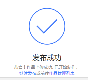 上传完成之后,即可显示发布成功,如图9.3.6所示。点击进入作品管理列表。