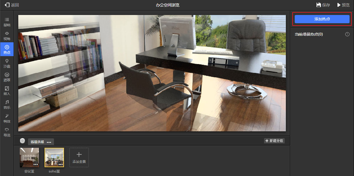 进入“热点”选项面板,点击“添加热点”,把两个场景关联起来。如图9.3.11所示。