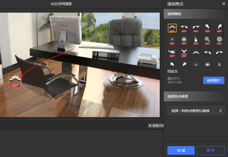 首先选择一个合适的图标,也可以自己上传。鼠标可以移动热点图标的位置。如图9.3.12所示。