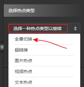 选择热点类型,为“全景切换”,因为我们是要切换到下一个全景。如图9.3.13所示。