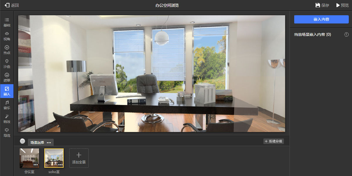 嵌入功能,如图9.3.18所示。可以在场景中嵌入图片或文字,比如说为原本黑白的电视机屏幕嵌入一组图片,并进行轮播,这样就会生动很多。也可以为某个物品嵌入一段文字说明。