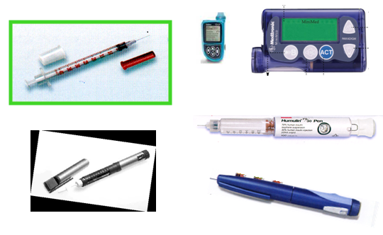 1.胰岛素常用注射器材:胰岛素注射笔、胰岛素专用注射器、胰岛素泵、无针注射器。