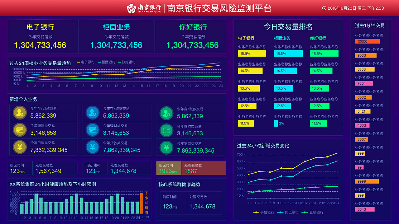 大数据可视化技术在商业和金融领域中的应用是非常重要的,它可以帮助企业和金融机构更好地理解和分析海量的数据,从而做出更准确、更智慧的决策。首先,金融行业的数据可视化对于决策者来说具有重要意义。金融机构涉及的数据类型繁多,包括但不限于财务数据、市场数据、客户数据等。通过将这些数据以直观简洁的方式展现出来,决策者可以更快速、准确地了解业务的现状和趋势,从而做出科学合理的决策。例如,通过数据可视化可以清晰地看到不同产品的销售情况,某一时段的市场波动情况等,从而帮助决策者更好地调整策略(图1)。