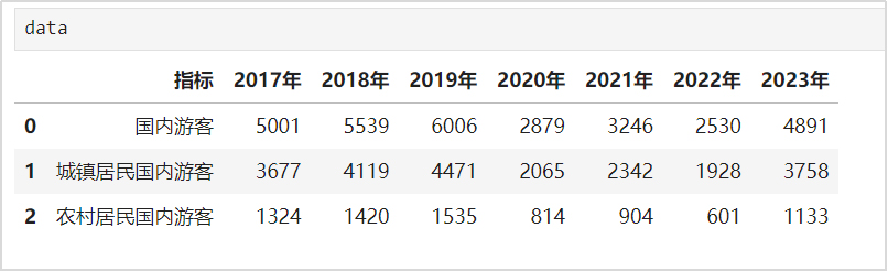 此时输出domestic_tourists中的信息,如图3所示。