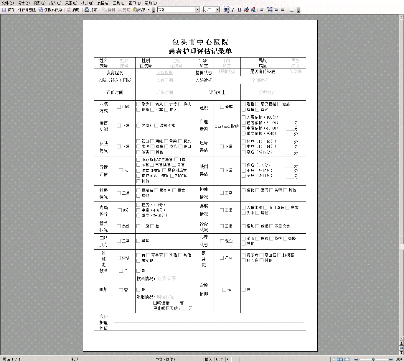 17-1 入院评估单