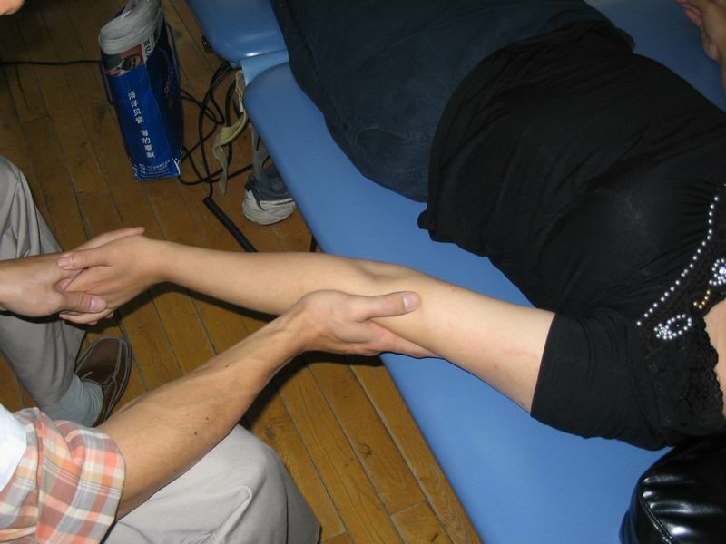 脑卒中患者上肢通常呈典型的屈曲痉挛模式,故在治疗中应对上肢进行抗痉挛的牵伸,使其上肢处于肩关节外展外旋,肘关节伸直,腕背屈的状态,以对抗痉挛。