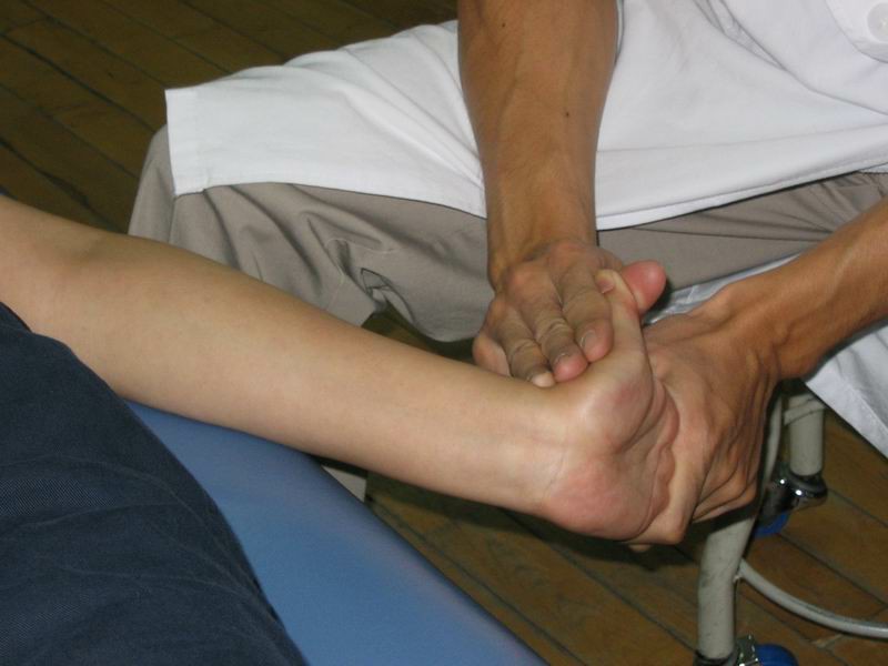 手功能的恢复对脑卒中患者日后的生活自理至关重要,因此,在上肢肌肉牵伸时,手部肌肉牵伸需格外注意。在进行腕背伸的同时,掌指关节及指间关节伸直,拇指外展。
