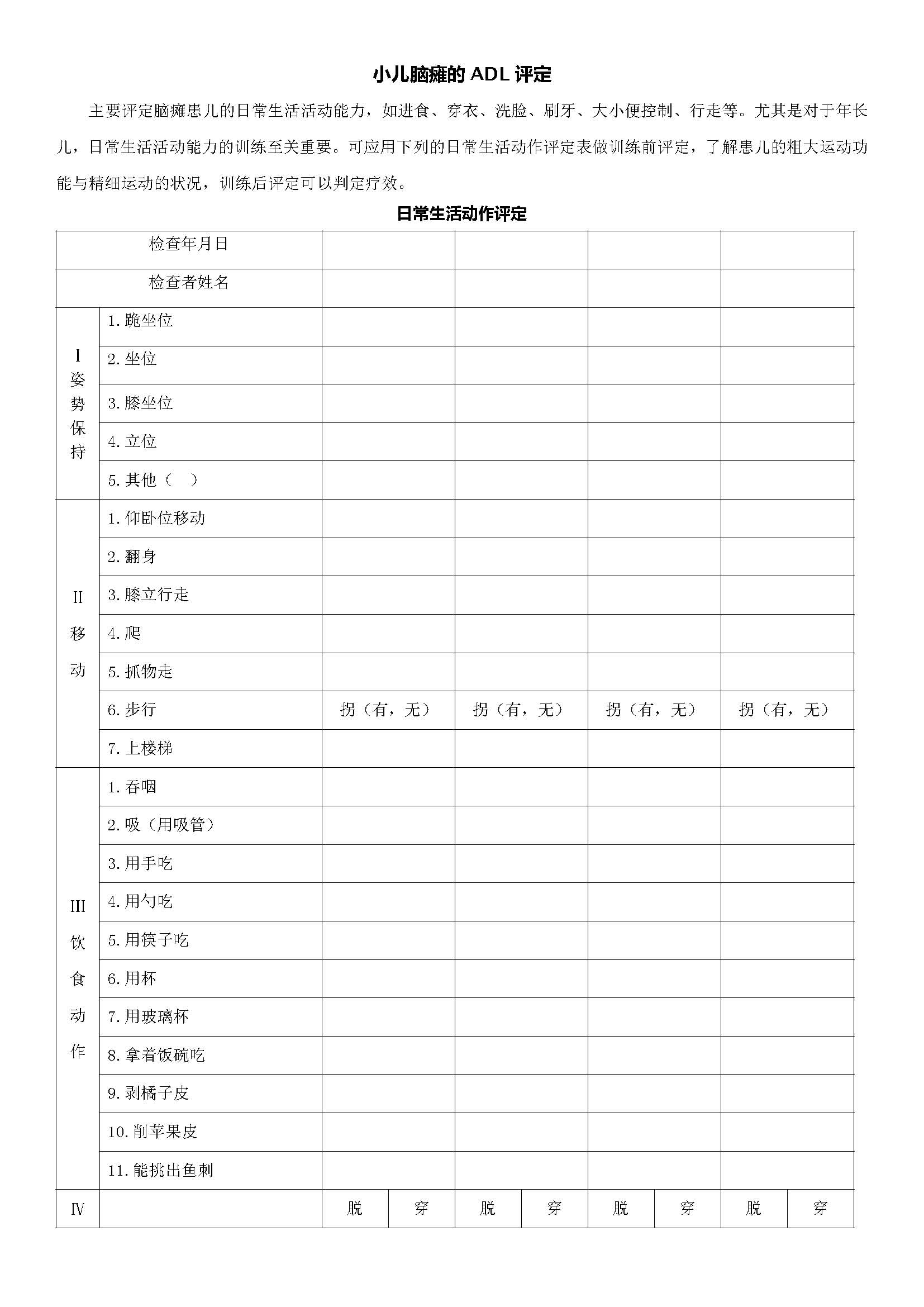 5-2 小儿脑瘫的ADL评定