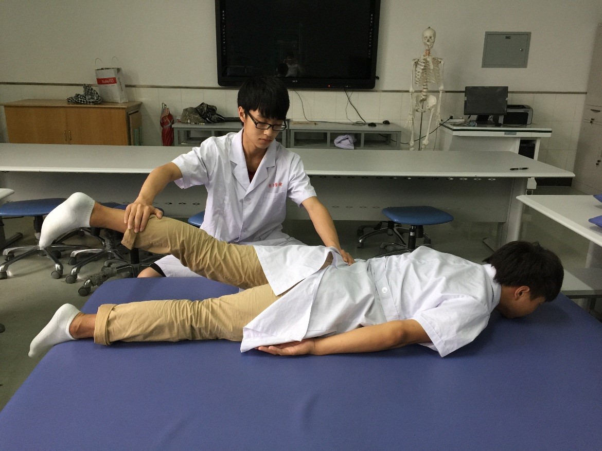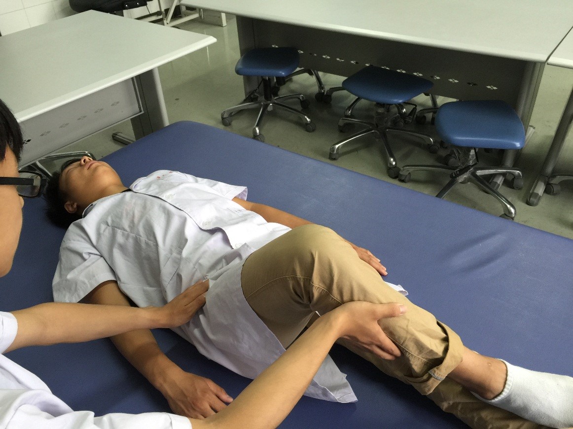 图4-51髋关节屈肌群1级、0级肌力检查方法