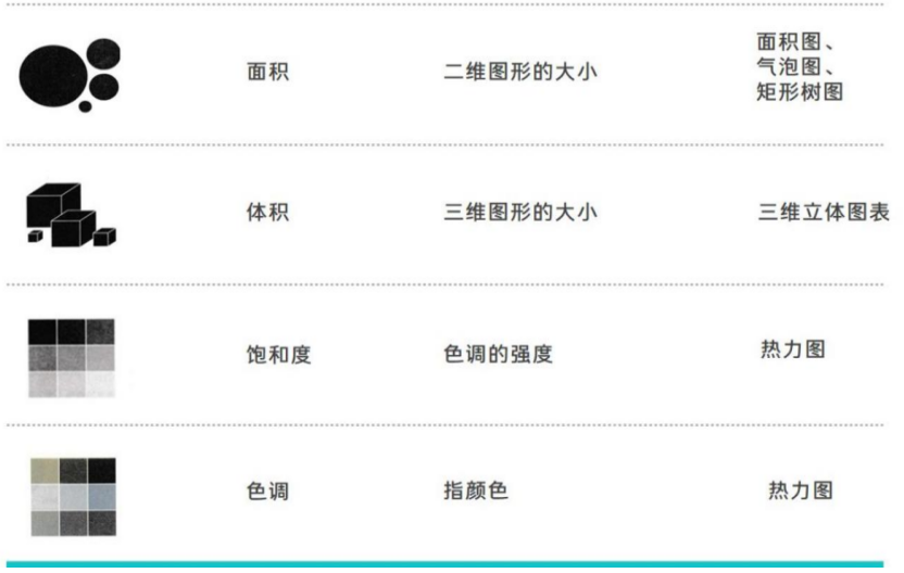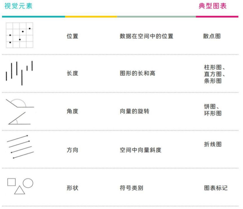 除了这些基础的图形外,其他的视觉元素也可以表示数据的特征,如图1所示。