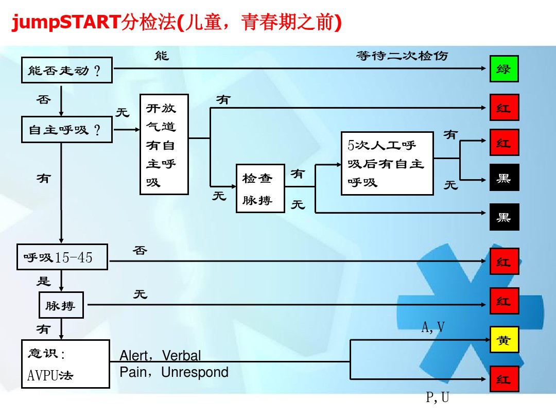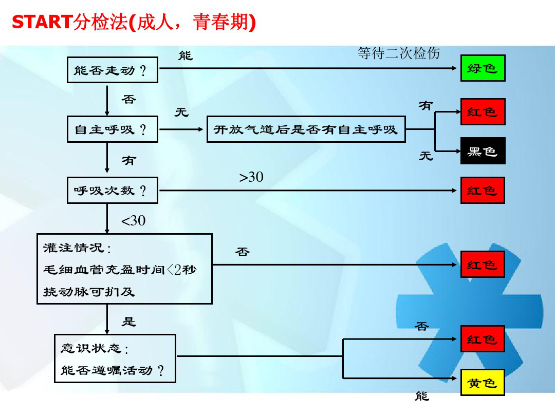 (2)呼吸频率≥30 次 /min 为危重伤员,标红标;