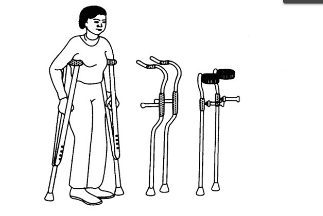 (1)拐杖的选择要求:使用拐杖最重要的是要长度合适、安全稳妥。拐杖的长度包括腋垫和拐杖底部橡胶垫,简易计算方法:使用者身高减上40cm。