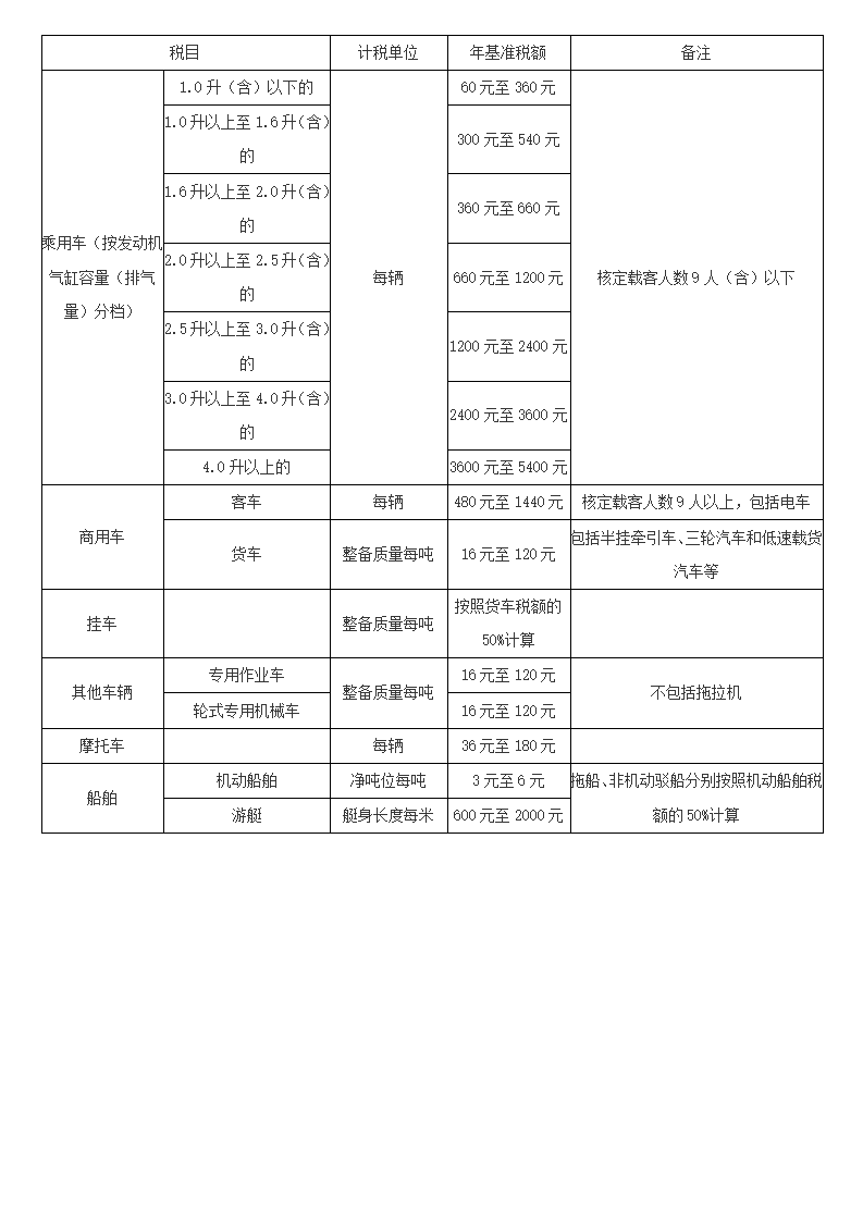 第二条 车船的适用税额依照本法所附《车船税税目税额表》执行。